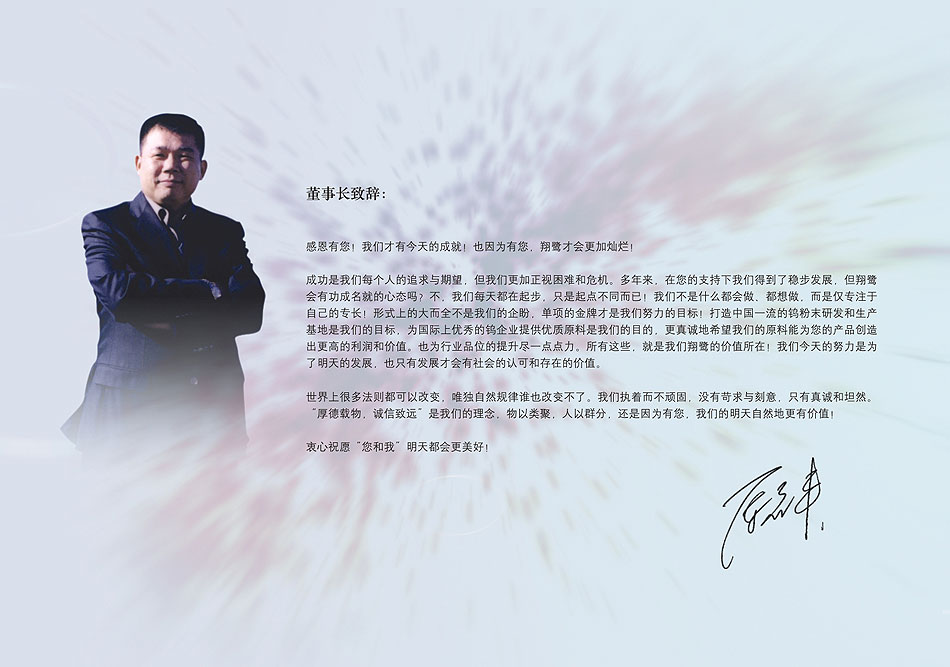 公司配備先進(jìn)的生產(chǎn)設(shè)備和工藝,擁有精密齊全的檢測儀器,注重技術(shù)創(chuàng)新,堅持實施技術(shù)領(lǐng)先的差異化戰(zhàn)略和強化管理降低成本的領(lǐng)先戰(zhàn)略,不斷提升產(chǎn)品技術(shù)工藝水平,繼續(xù)加大研發(fā)投入力度,以做精、做專、做實為原則提升企業(yè)在整個行業(yè)的綜合競爭力,努力打造一流的中國鎢粉末研發(fā)和生產(chǎn)基地,向具有較強國際競爭力的集團(tuán)化高科技企業(yè)邁進(jìn)。